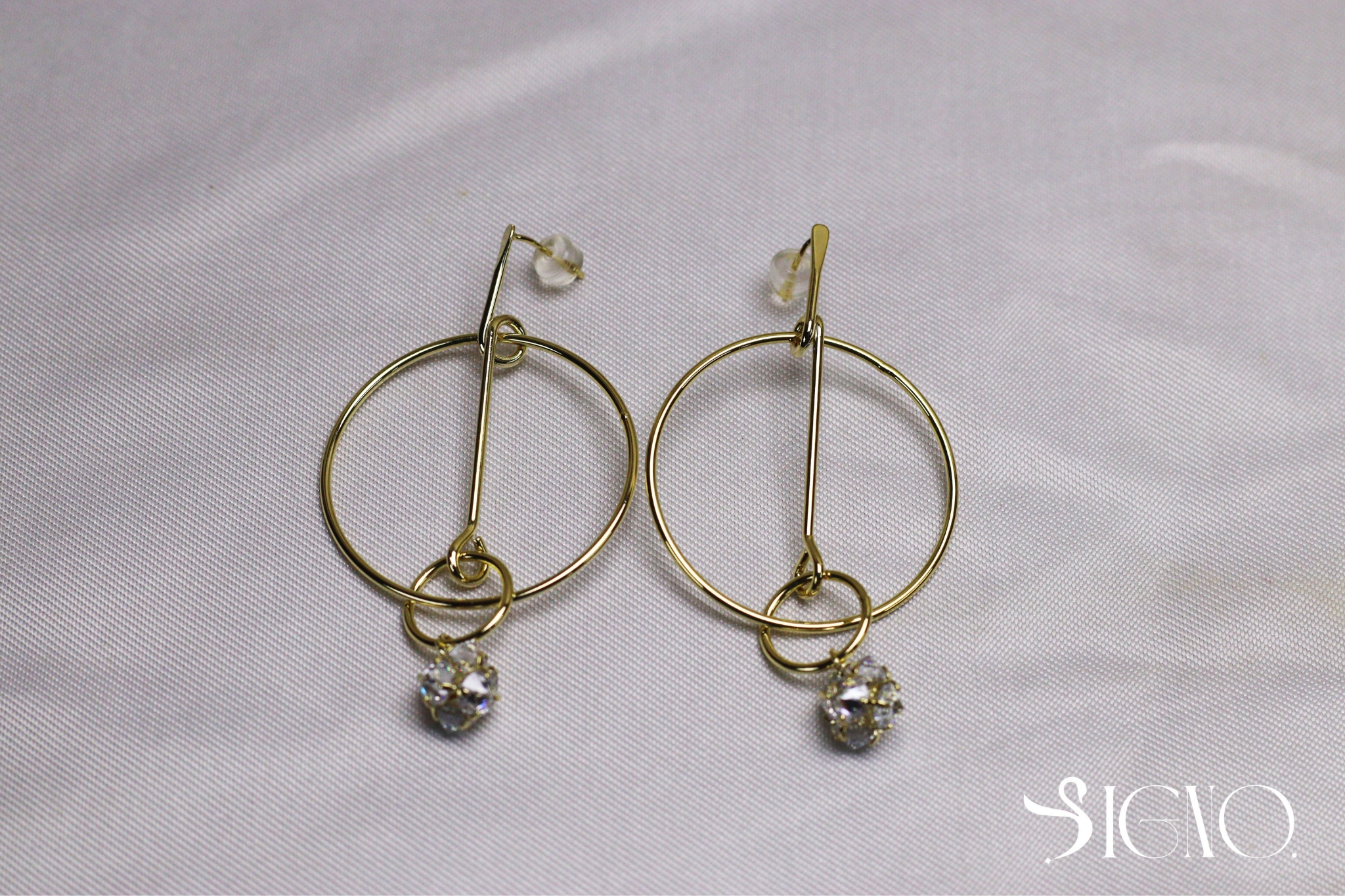 These stylish earrings feature a clear crystal charm suspended from a gold-toned circle and bar. Their simple yet eye-catching design makes them a versatile addition to your jewelry collection.